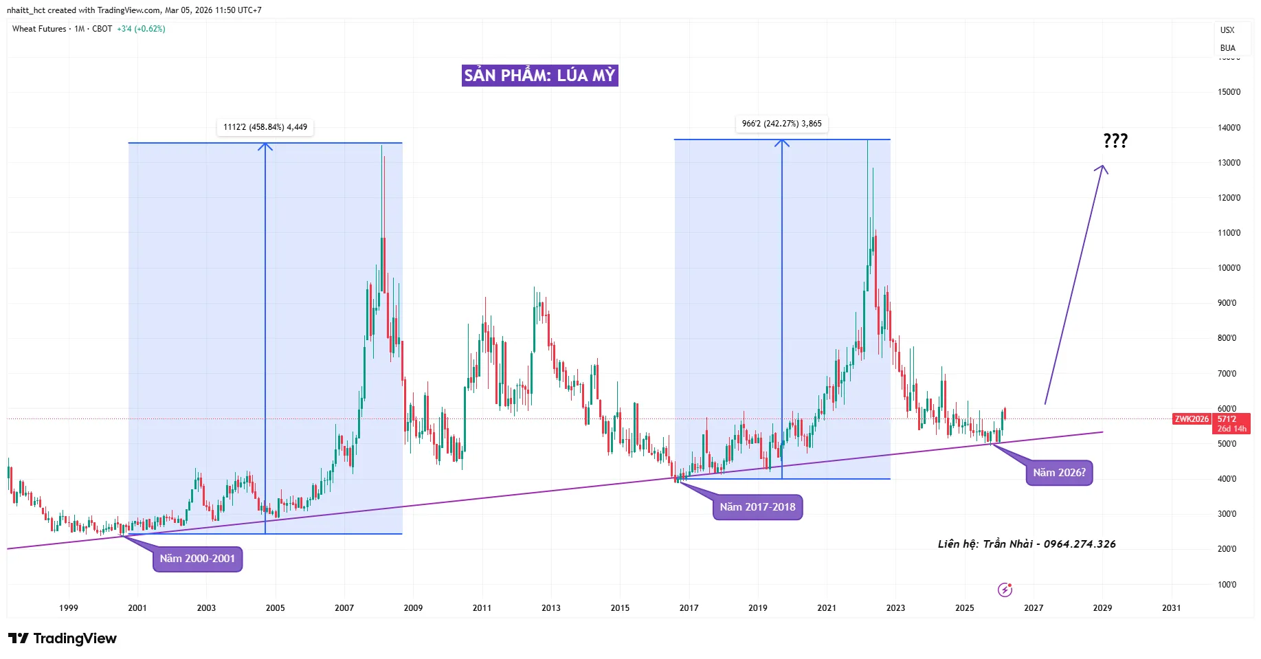 - Hiện tại giá Lúa đã đi ngang quanh vùng đáy này gần 1 năm nay, tháng 2 vừa rồi đóng nến tháng tăng mạnh khối lượng MUA tăng đột biến cho thấy dấu hiệu của dòng tiền lớn đã tham gia => Đây sẽ là cơ hội đầu tư cực kỳ hấp dẫn trong năm 2026