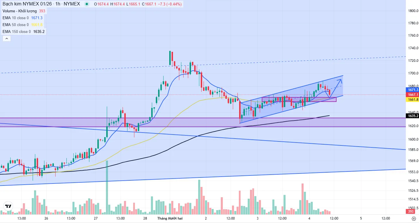 Bạch kim (Platinum) tiếp tục duy trì trong kênh giá tăng trung – dài hạn, thể hiện xu hướng vững mạnh: