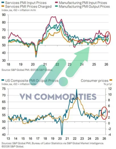 PMI sản xuất tăng lên 52.4 điểm, vượt mức kỳ vọng 51.5 điểm và cao hơn mức 51.6 điểm của kỳ trước, đây là mức cao nhất kể từ tháng 10/2025. Ngược lại, PMI dịch vụ gây thất vọng khi giảm xuống mức thấp nhất kể từ tháng 4/2025.