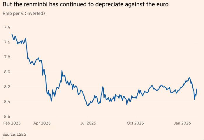 Giám đốc điều hành IMF Kristalina Georgieva đã nhiều lần kêu gọi Bắc Kinh xử lý các “mất cân đối” kinh tế, bao gồm tình trạng giảm phát kéo dài, dẫn tới “sự suy yếu đáng kể của tỷ giá hối đoái thực”. Dù Phó Thống đốc PBOC Zou Lan phủ nhận việc cố tình tận dụng đồng tiền yếu để tạo lợi thế thương mại, và nhà chức trách chấp nhận mức tăng giá nhẹ của RMB so với USD (vượt mốc 7 RMB/USD), đồng tiền này vẫn tiếp tục mất giá so với euro.