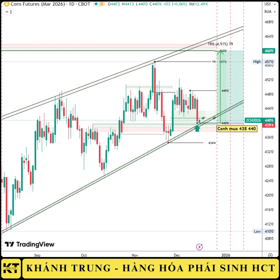 Xu hướng tích cực. Có thể mở mua tại vùng giá 440. Muc tiêu hướng đến vùng giá 450 > 460. Quản trị 435.