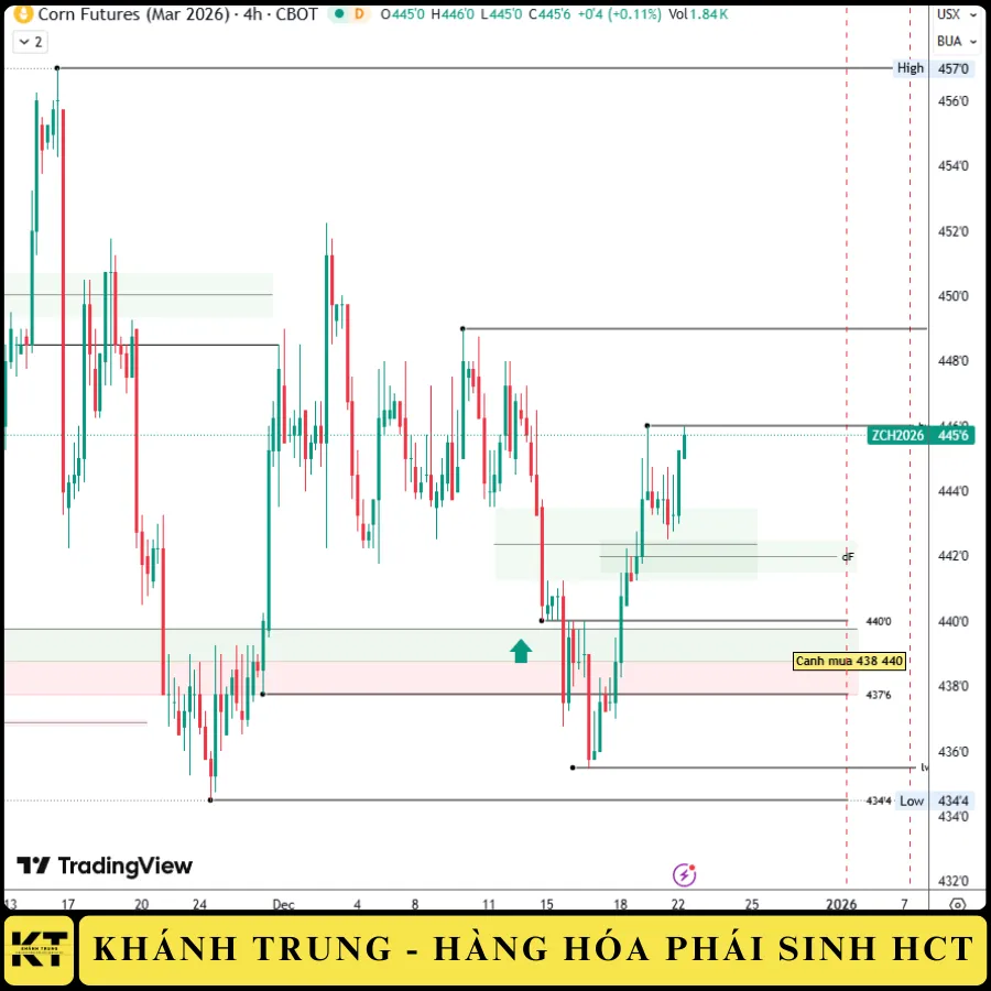 Lệnh mua 440 tuần trước đang có lợi nhuận 250$/1HĐ. Xu hướng tích cực duy trì. Canh mua bổ sung tại 441. Quản trị 435.