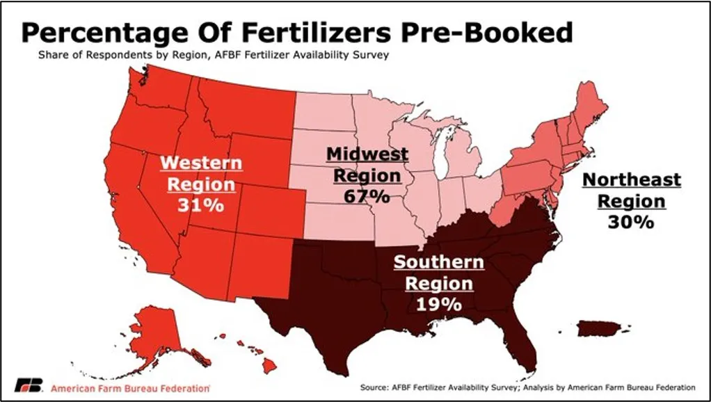 Nông dân Mỹ đang phản ứng rất khác nhau trước đà tăng mạnh của giá phân bón và dầu diesel. Khu vực Trung Tây có tỷ lệ đặt mua phân bón trước cao nhất, ở mức 67%, cho thấy nông dân tại đây chuẩn bị đầu vào khá sớm. Ngược lại, miền Nam chỉ đạt 19%, còn miền Tây và Đông Bắc lần lượt là 31% và 30%.