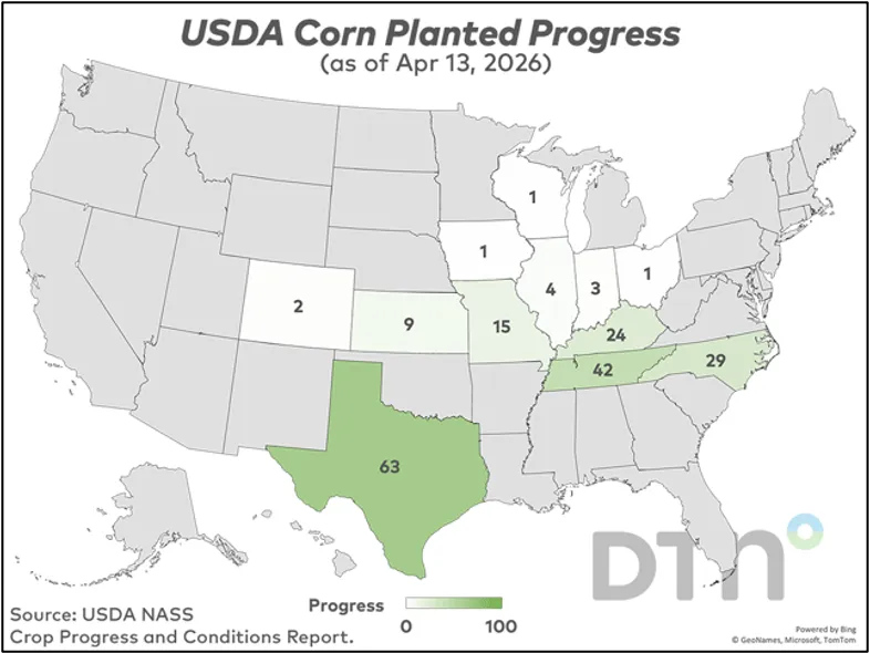 Tiến độ gieo trồng ngô cũng đang được đẩy nhanh tại một số bang, Texas tiếp tục dẫn đầu.