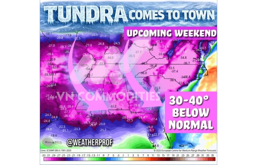 Thị trường nông sản thế giới đang chứng kiến sự bứt phá mạnh mẽ của ngô Mỹ với doanh số xuất khẩu đạt đỉnh 5 năm. Trong bối cảnh chi phí sản xuất tăng cao thiết lập mặt bằng giá sàn mới, các rủi ro thời tiết cực đoan từ không khí lạnh Bắc Cực đến nắng nóng tại Nam Mỹ đang trở thành những biến số quan trọng định hình xu hướng giá hàng hóa trung hạn.