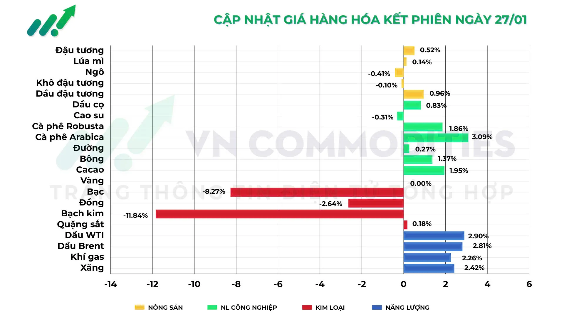 Tổng hợp biến động giá các loại hàng hóa kết phiên ngày 27/01/2026: