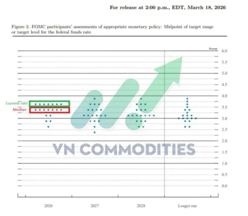 Ngày 18/03, Cục Dự trữ Liên bang Mỹ (Fed) tuyên bố giữ nguyên lãi suất trong kỳ họp chính sách thứ hai từ đầu năm, một động thái khiến thị trường kim loại quý biến động mạnh. Mặc dù quyết định không nằm ngoài dự báo, nhưng nhà đầu tư lo ngại là việc tuyên bố lãi suất của Fed đề cập đến việc lạm phát còn cao hơn so với mục tiêu và không đưa ra tín hiệu gì về việc khi nào sẽ hạ lãi suất. Các nhà hoạch định chính sách Mỹ hiện chỉ kỳ vọng một đợt cắt giảm lãi suất duy nhất trong năm 2026, đây là tín hiệu cho thấy lập trường thận trọng và xu hướng duy trì chính sách thắt chặt lâu hơn dự kiến.