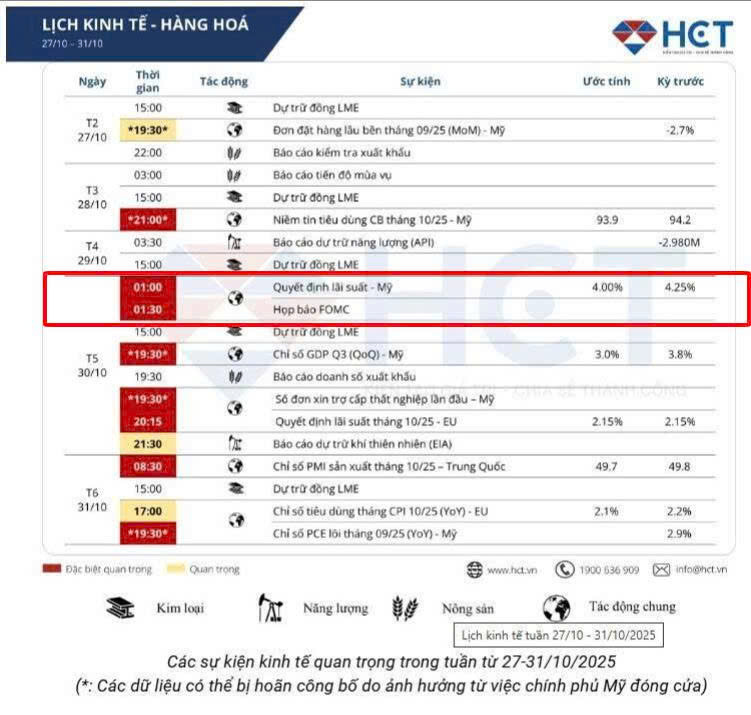 Trong suốt hai tháng qua (tháng 9 – 10), giá các kim loại quý đã tăng mạnh khi giới đầu tư tin rằng Fed sẽ sớm bước vào chu kỳ nới lỏng chính sách. Điều này khiến kỳ vọng giảm lãi suất đã được phản ánh trước vào giá. Vì vậy, ngay cả khi Fed thực sự hành động, thị trường không còn động lực tăng thêm, thay vào đó là áp lực chốt lời ngắn hạn.